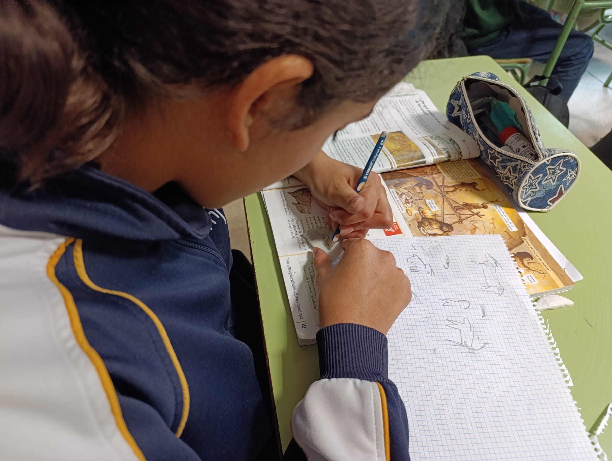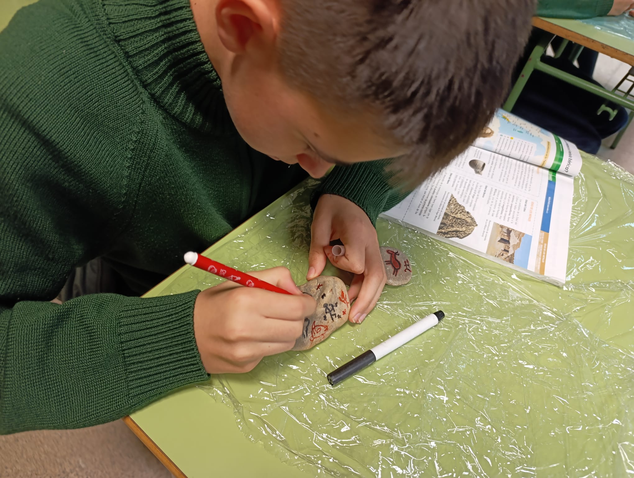 Durante la actividad han investigado las características del arte paleolítico y neolítico, sus técnicas, materiales naturales y el significado de las representaciones de animales y escenas de caza. Después, pusieron en práctica lo aprendido recreando sus propias pinturas.