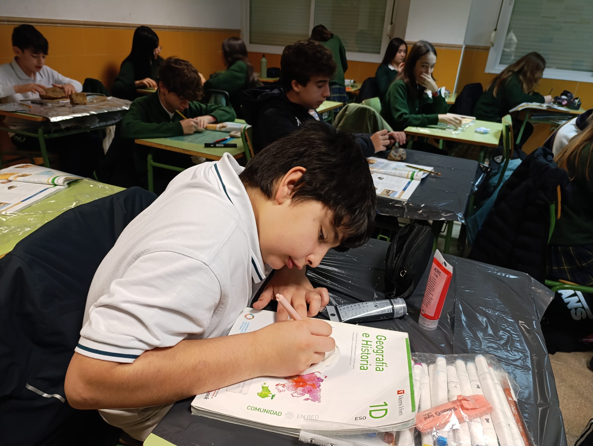 Viajamos al pasado a través del arte… ¡como auténticos artistas del Paleolítico!El alumnado de 1º de ESO de Geografía e Historia ha participado en un taller de pintura rupestre, donde han descubierto cómo se expresaban nuestros antepasados miles de años atrás.