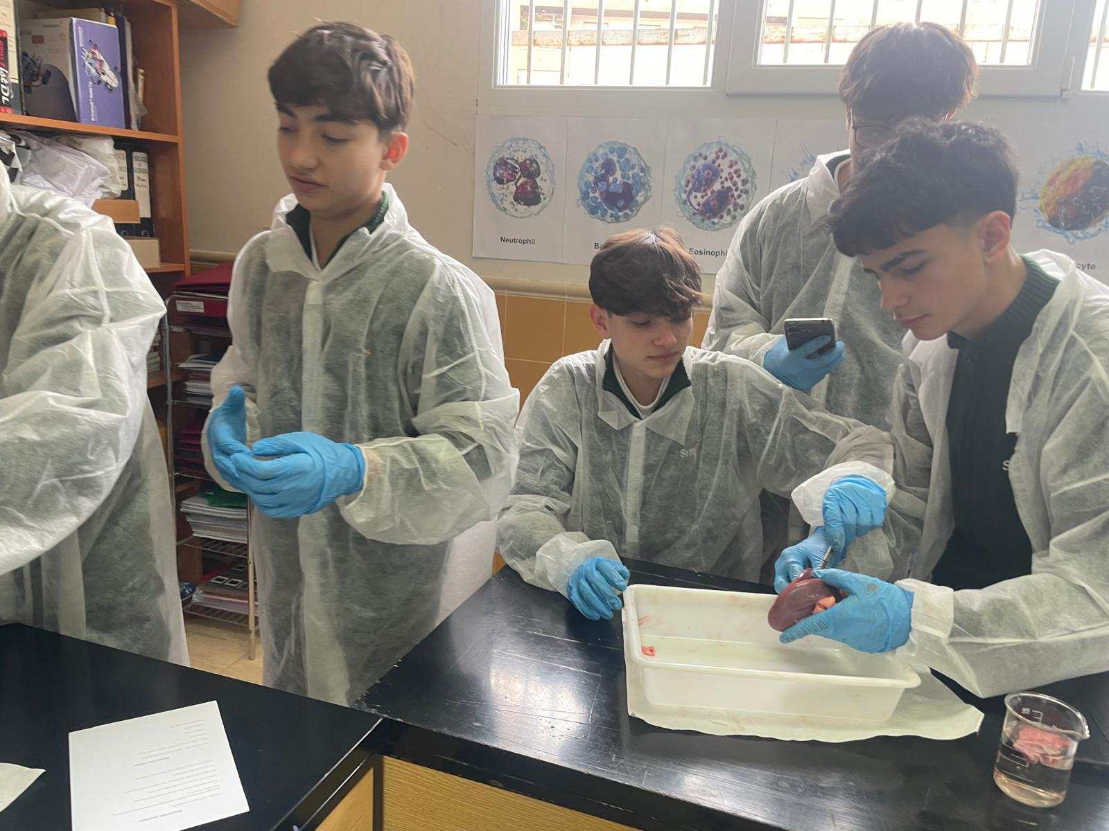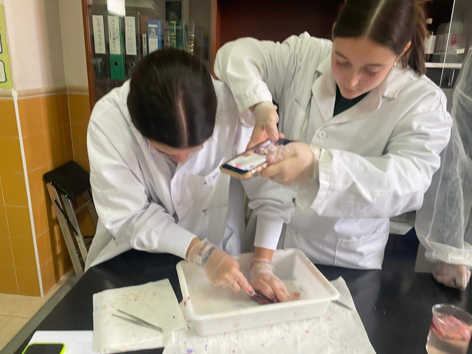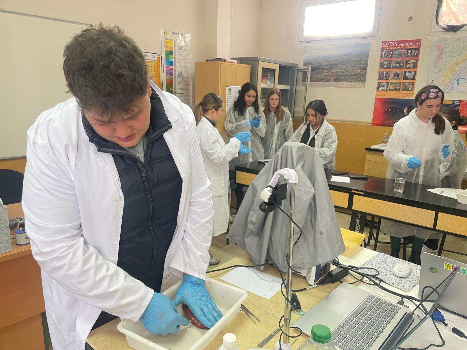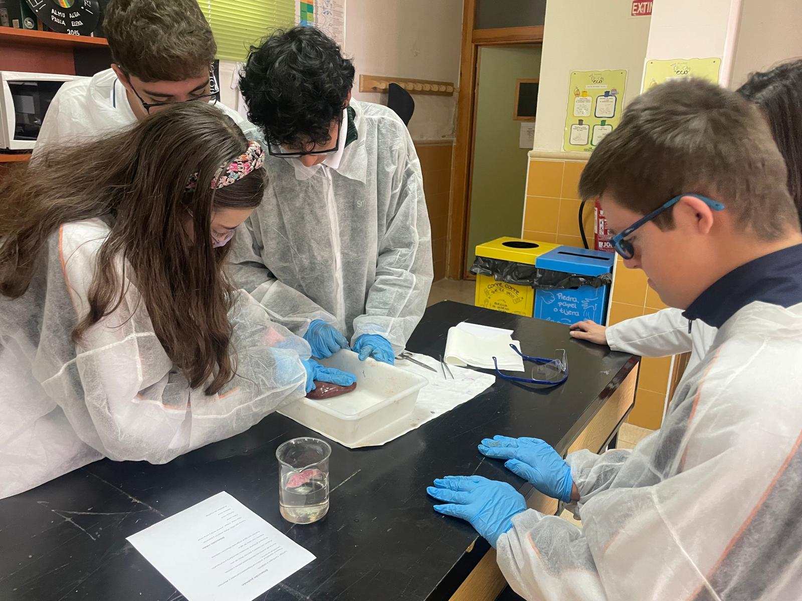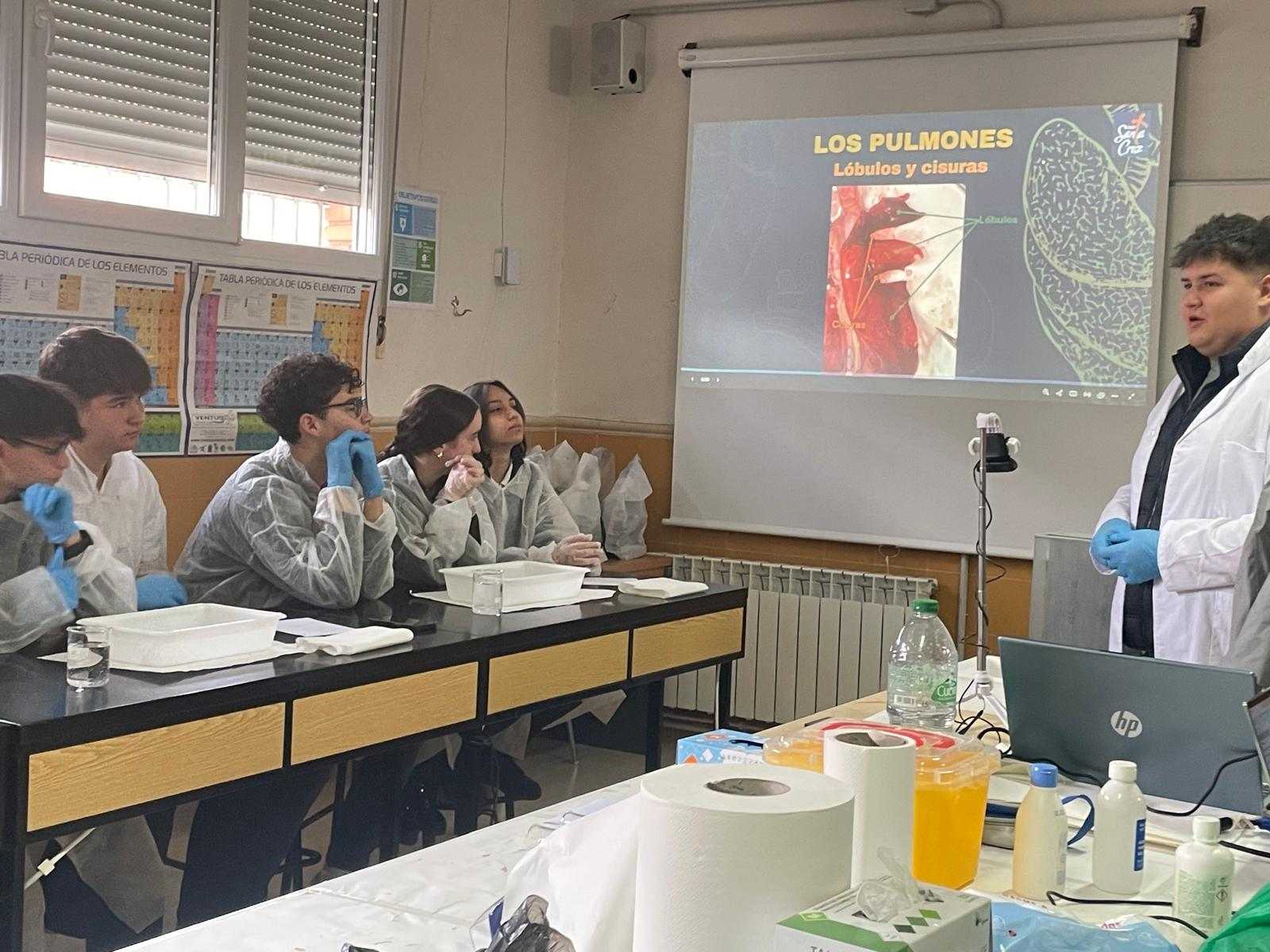 La práctica ha tenido dos sesiones, una primera en donde David Somolinos, estudiante de Grado Superior de Laboratorio de Diagnóstico Clínico y Biomédico y antiguo alumno del centro, ha realizado una presentación interactiva para conocer cuál sería el proceso de disección. Posteriormente, los alumnos se han puesto “manos a la obra”, y han realizado los distintos cortes anatómicos, para apreciar en profundidad las características anatómicas y fisiológicas de los tres órganos.
