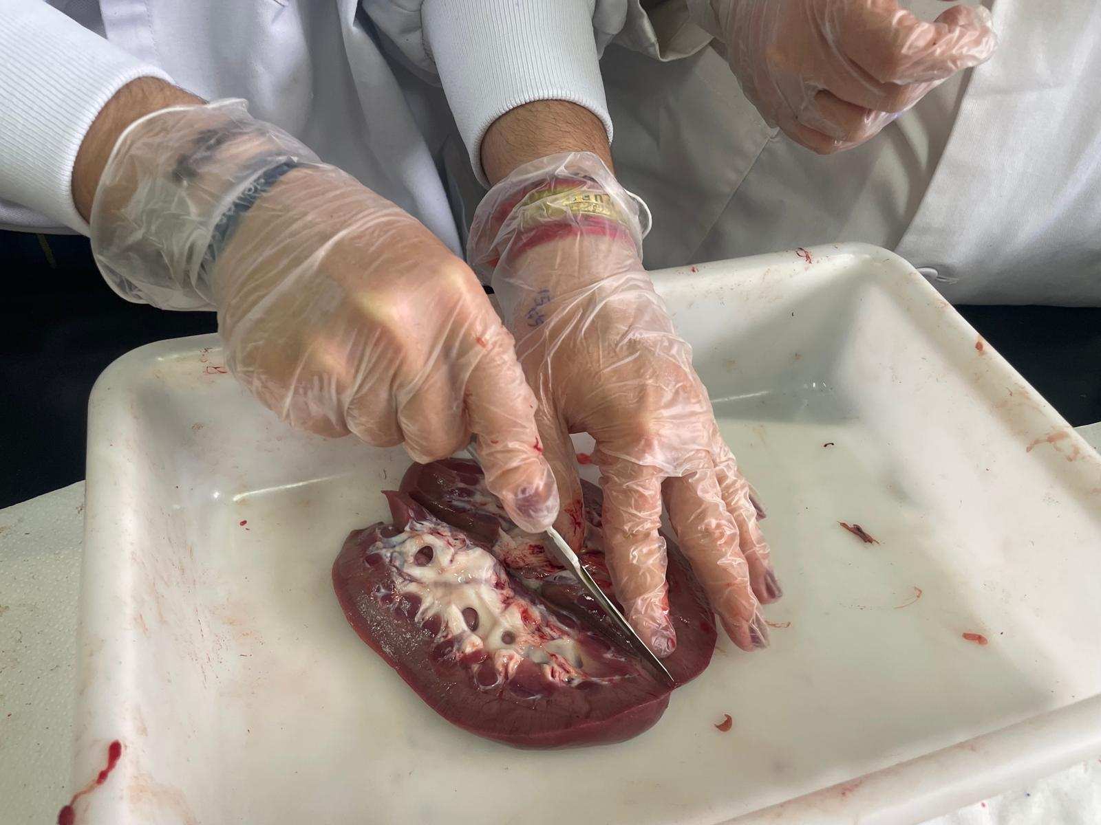 La metodología de trabajo ha sido grupal, practicando sobre órganos reales, realizando cortes quirúrgicos, para apreciar la anatomía de los 2 principales órganos que posibilitan las funciones fisiológicas de la respiración y excreción de sustancias de desecho.
