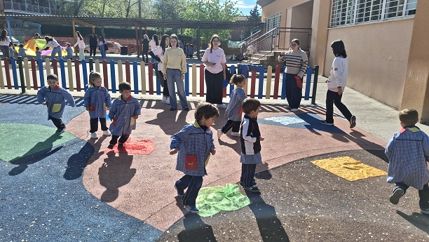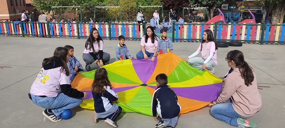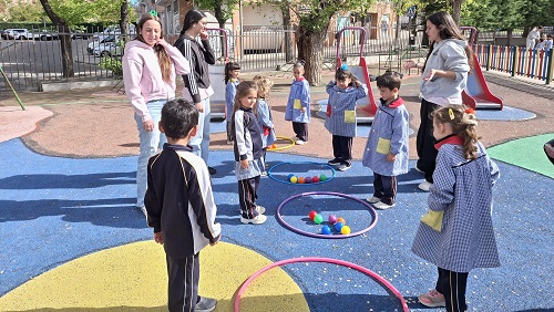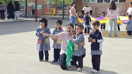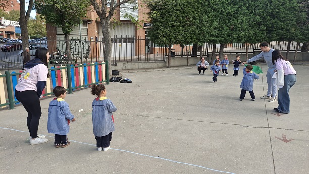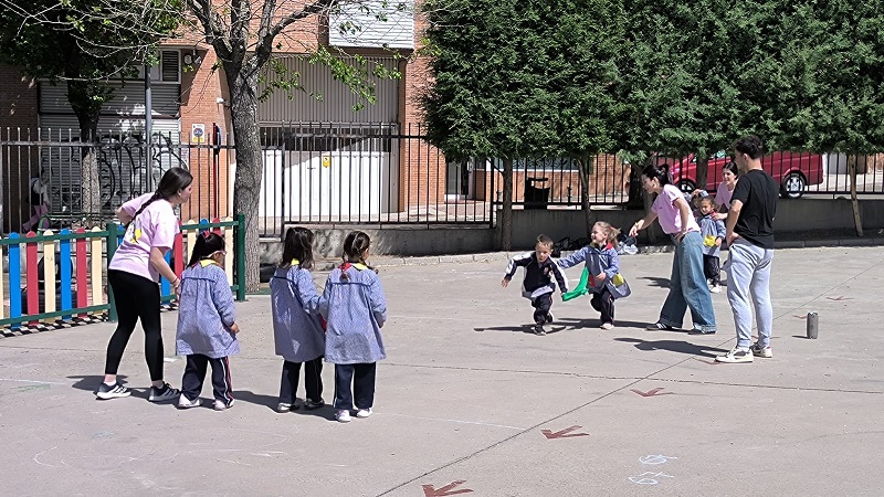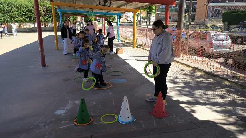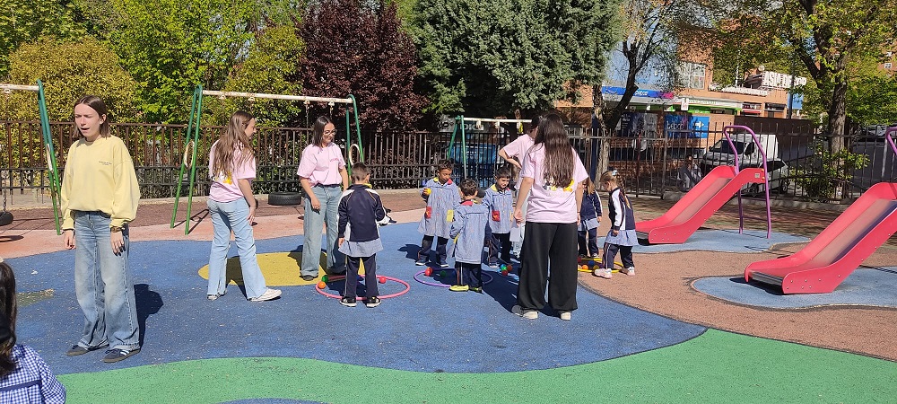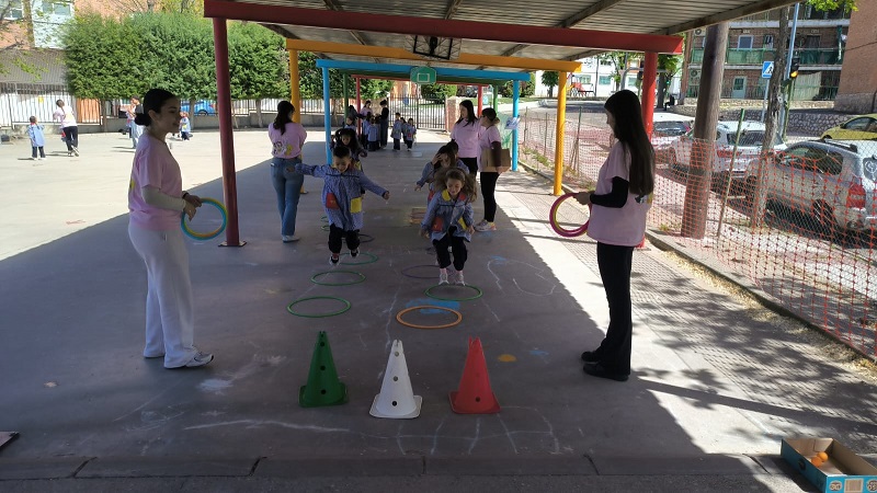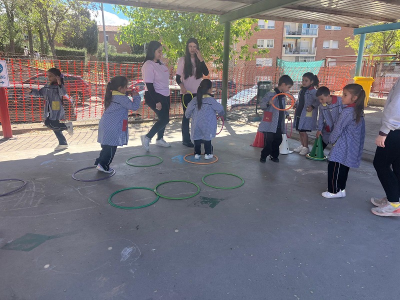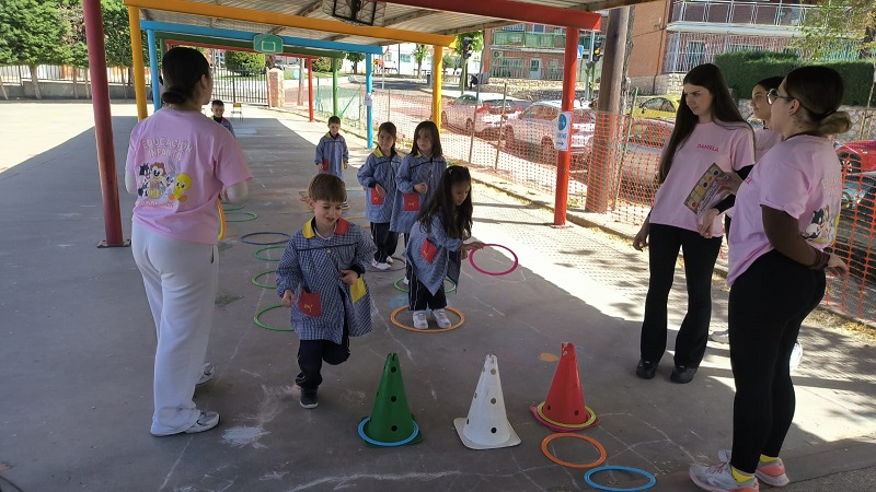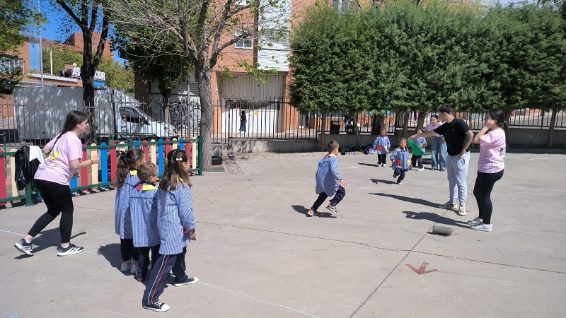 Second Day. VII Healthy and Sporty week. Esta mañana hemos tenido la suerte de contar con la visita de los alumnos del Grado de Técnico Superior en Educación Infantil, de Colegio Diocesano Cardenal Cisneros junto con sus profesoras. Han organizado juegos populares en el patio, haciendo disfrutar muchísimo a nuestros alumnos.