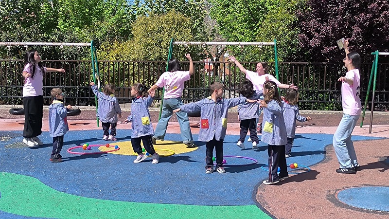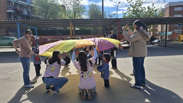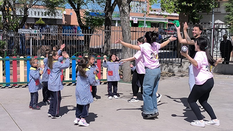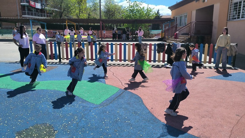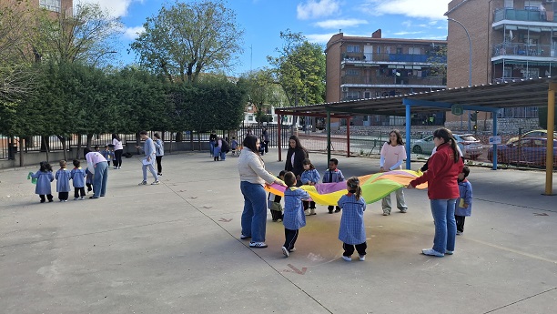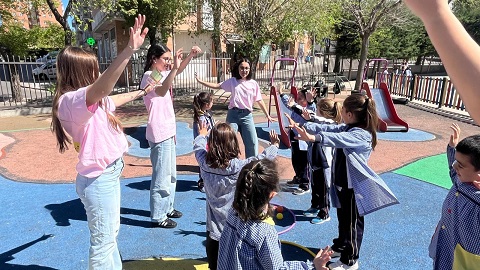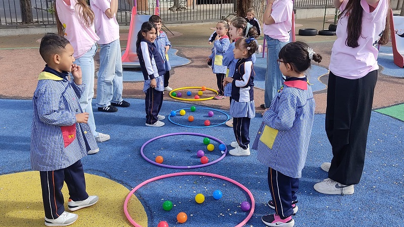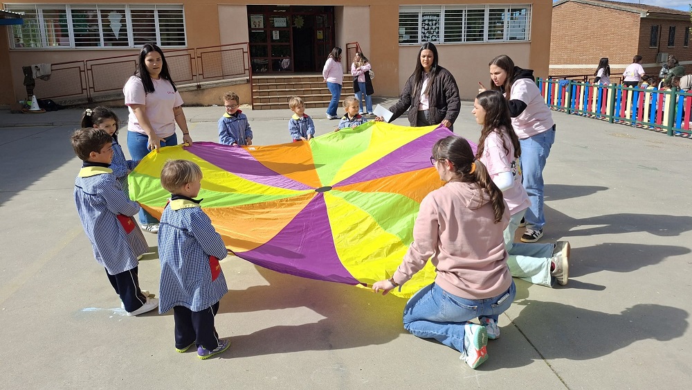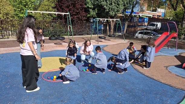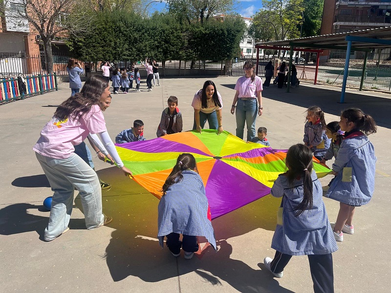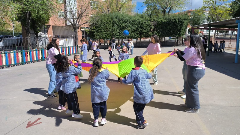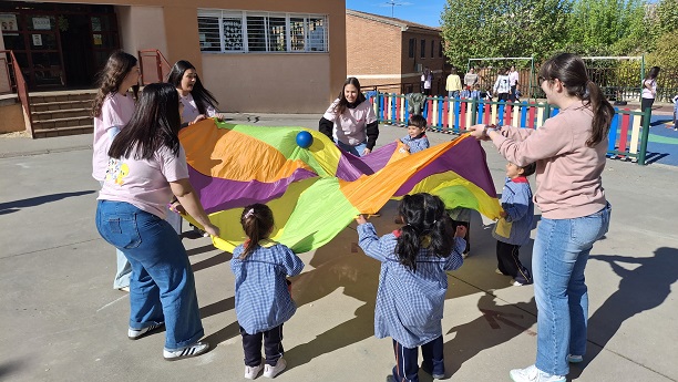 Second Day. VII Healthy and Sporty week. Esta mañana hemos tenido la suerte de contar con la visita de los alumnos del Grado de Técnico Superior en Educación Infantil, de Colegio Diocesano Cardenal Cisneros junto con sus profesoras. Han organizado juegos populares en el patio, haciendo disfrutar muchísimo a nuestros alumnos.